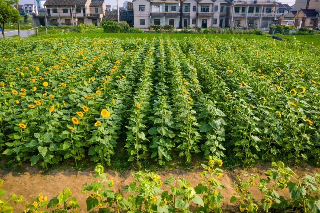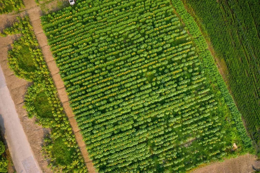 近日,四团镇向阳村的向日葵花海进入开花期,数百株金灿灿的花朵竞相绽放,朵朵葵花汇成金黄色的海洋,引来成群的蝴蝶嬉戏、蜜蜂采蜜。